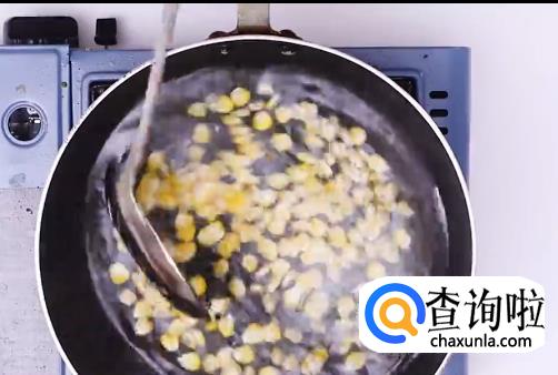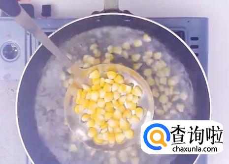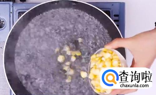 准备一锅沸水,然后下玉米粒,将玉米粒焯水捞出。