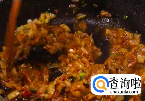 放入辣酱,香油不断搅拌均匀。