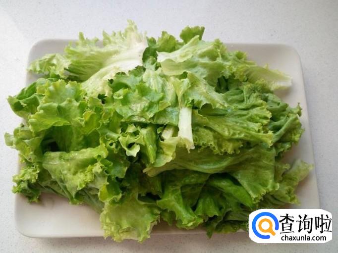 生菜用手掰成片,用水清洗干净,控干水分,备用。