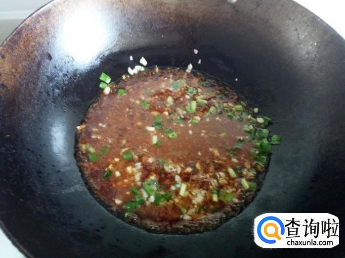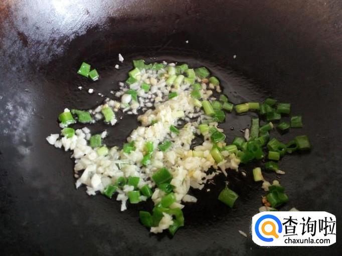 锅内放入少量油加热,油三,四成热时,放入葱,姜,蒜,小火翻炒,炒出香味。