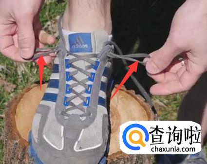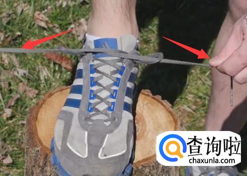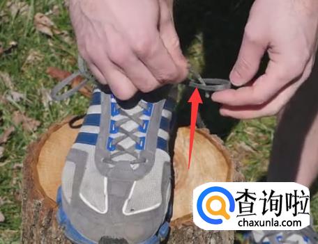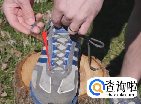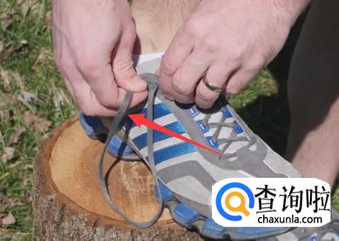 然后穿入的鞋带不要拉完,留一点形成一个圈。