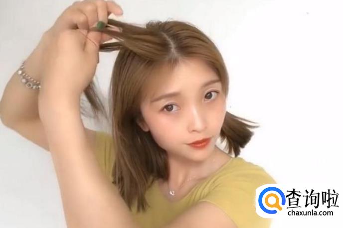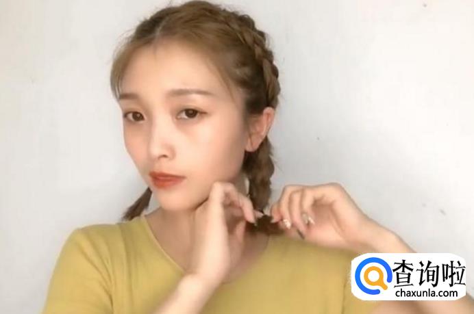将头发分左右两股,分缝的位置自己选择,但是尽量保证发量一致。