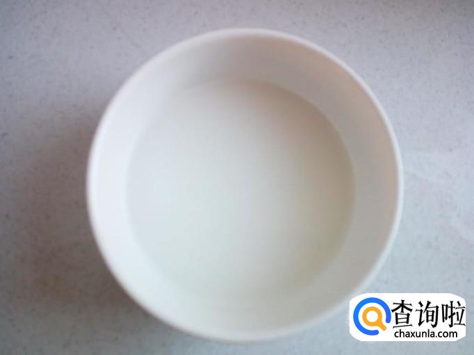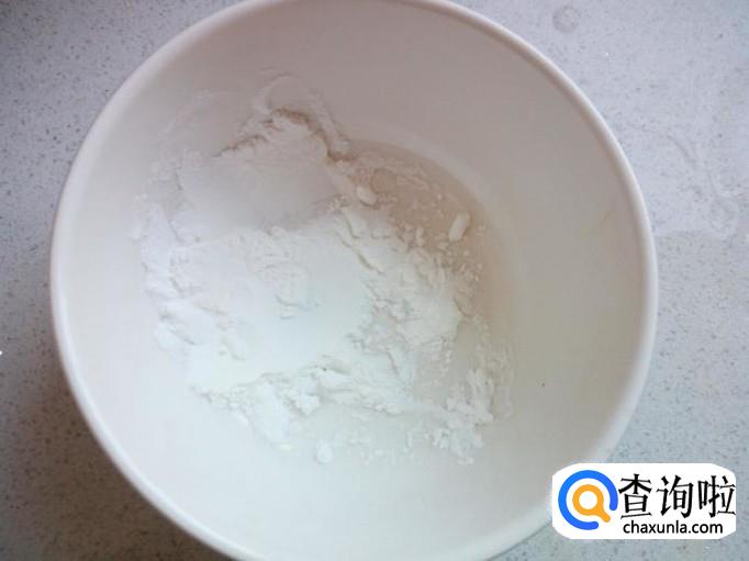 碗里放入一匙儿淀粉,兑水,勾成芡汁,备用。