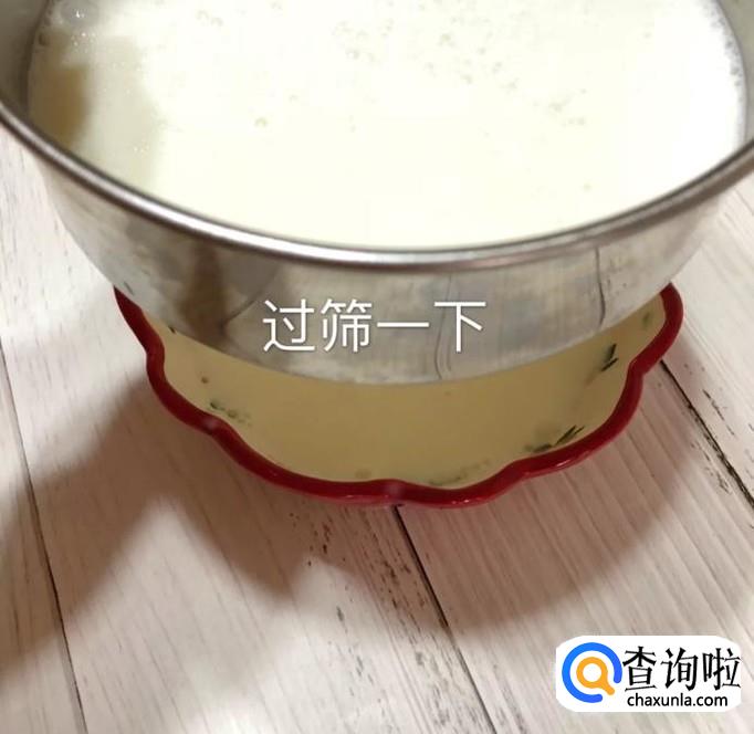 然后将搅拌好的牛奶过一下筛,如下图所示。