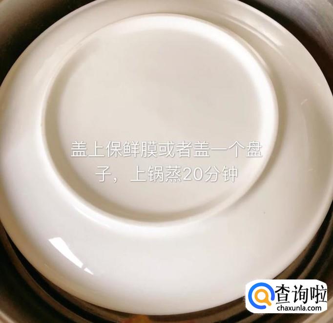 接着盖上保鲜膜或者是一个盘子,上锅蒸20分钟,如下图所示。