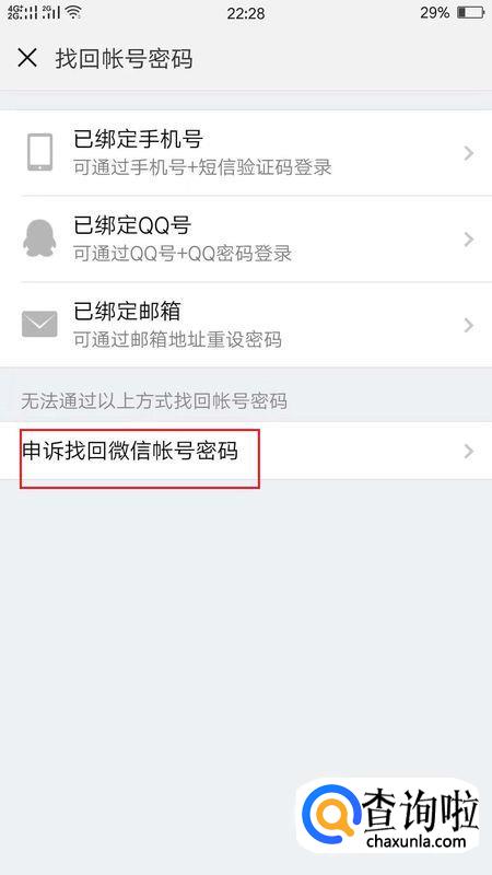 进入以后找到“申诉找回微信帐号密码”一项,点击进入。