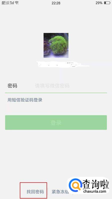 手机打开微信进入后,在登录界面找到“找回密码”一项,点击进入。