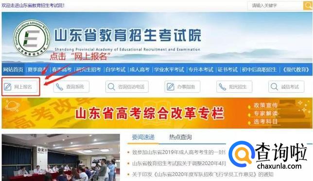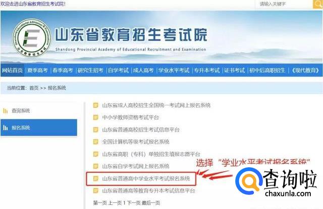 登陆省招生考试院的官网,点击“网上报名”,再点“省普通高中学业水平考试网上报名系统”,登陆报名系统。(这里以山东省为例,每个省都有自己的招生考试院,流程基本一致)