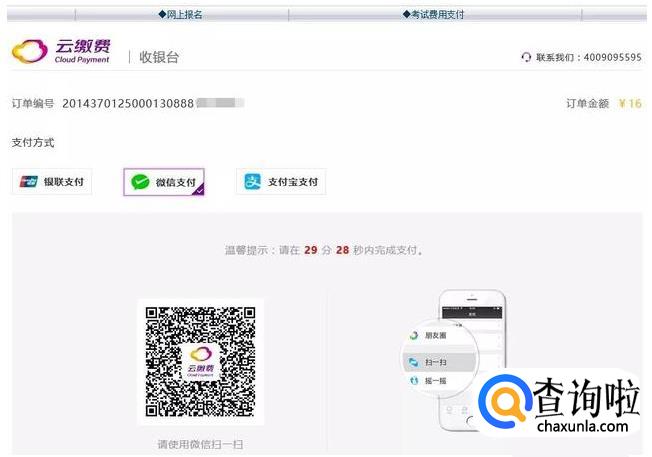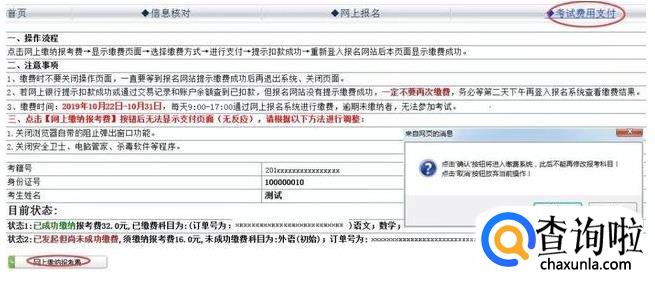 银联、微信、支付宝缴费成功后,请关闭浏览器重新登录报名系统,然后点击“考试费用支付“链接进行查看。