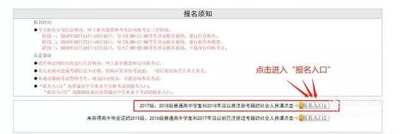 2017级、2018级高考学生选择第一个报名页面,点击【报名入口1】。