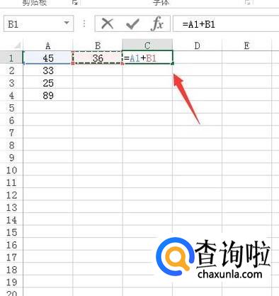 打开excel我们在单元格内输入数据,然后再选择一个单元格然后输入我们的计算公式,如图所示: