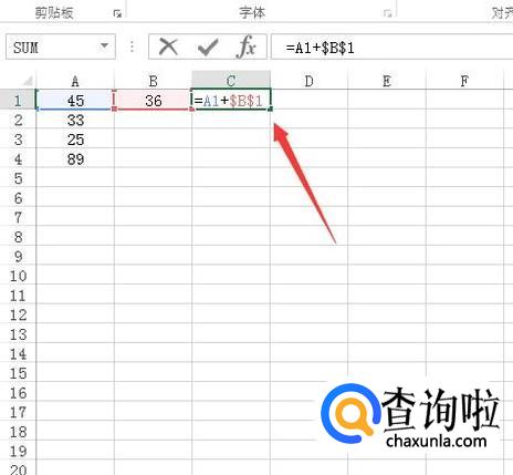 输入好公式之后我们在将B1单元格的前面加上绝对引用符号,如图所示: