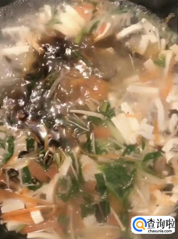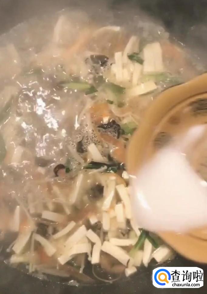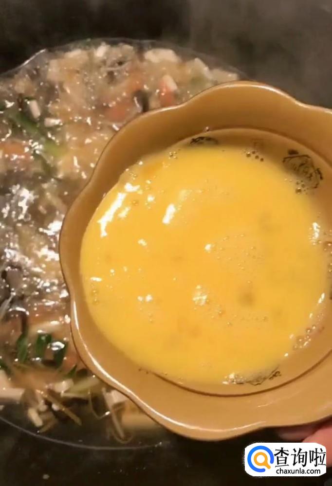 煮好以后我们淋入适量的水淀粉勾芡一下
