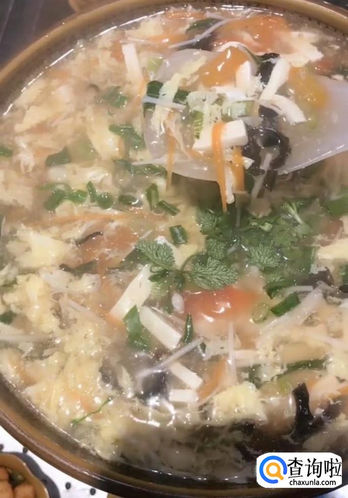 虾仁,豆腐,木耳,金针菇,胡萝卜,油菜,西红柿,盐,鸡精,胡椒粉,米醋,淀粉,鸡蛋三个,香油,葱,香菜