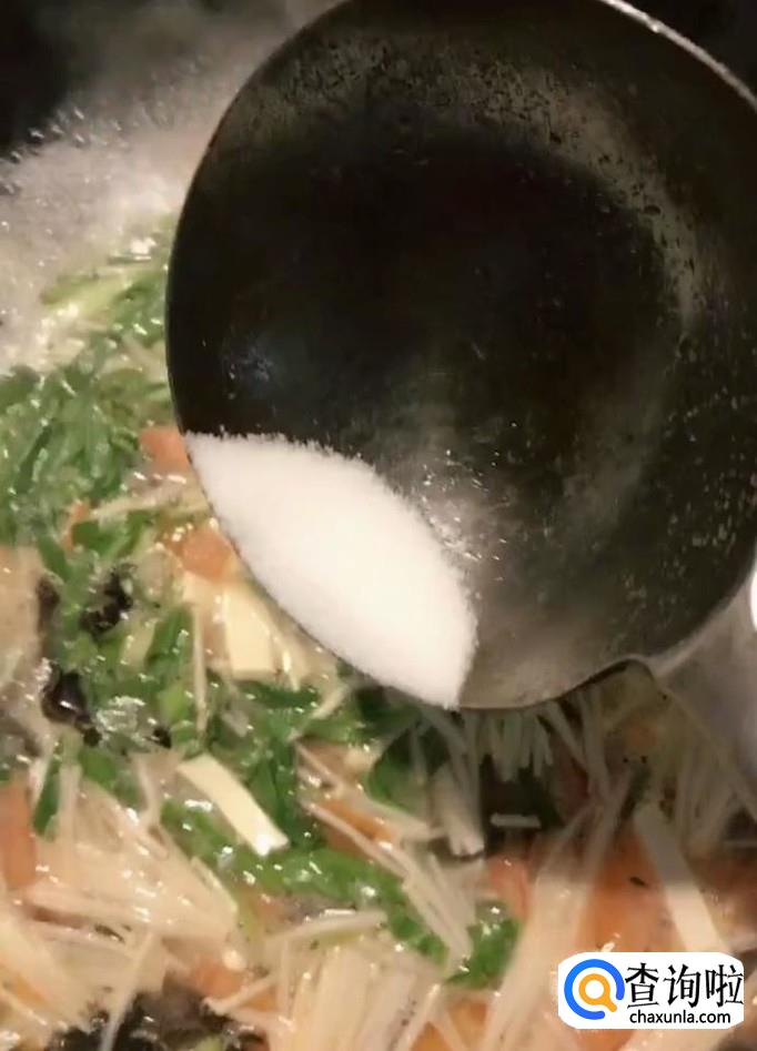然后我们开始调味:依旧个人口味加入适量的盐,鸡精,胡椒粉,搅拌均匀