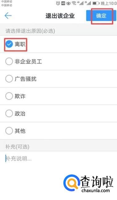弹出的界面,我们选择离职,然后点击确定就可以了。