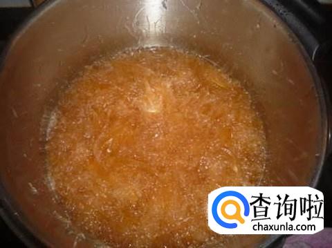 锅中放入少许水,将果冻粉和茉莉花放入一起煮,边煮边搅拌,煮到变成果冻胶即可。