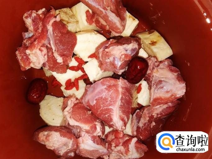甘葛400克,瘦肉400克,黄精150克,红枣、枸杞各10克,1勺料酒。