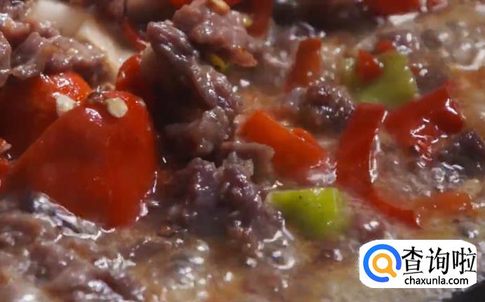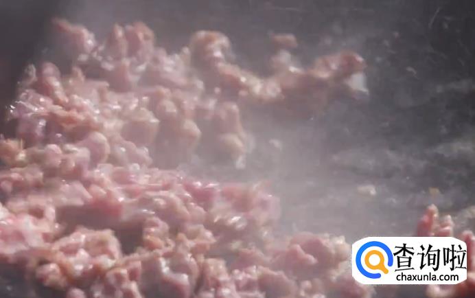 接着热锅起油,至六成热时放入牛肉丁炒散。