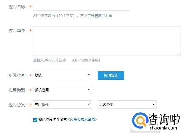 输入应用名称、应用简介之后,选择应用类型和应用分类,点击“保存”。