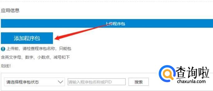 左侧点击“应用维护”,在刚刚创建的应用点击“添加程序包”。