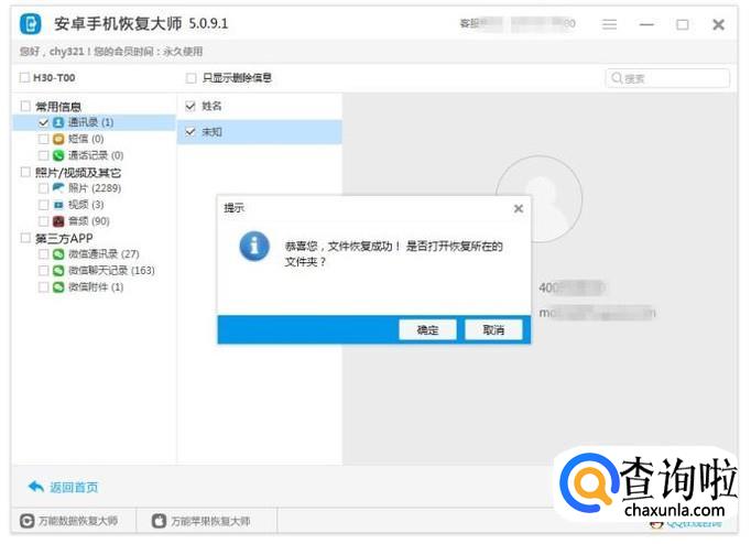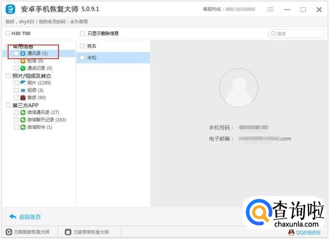 最后,扫描完成后,在界面上点击左侧的通讯录进入查看具体的号码。