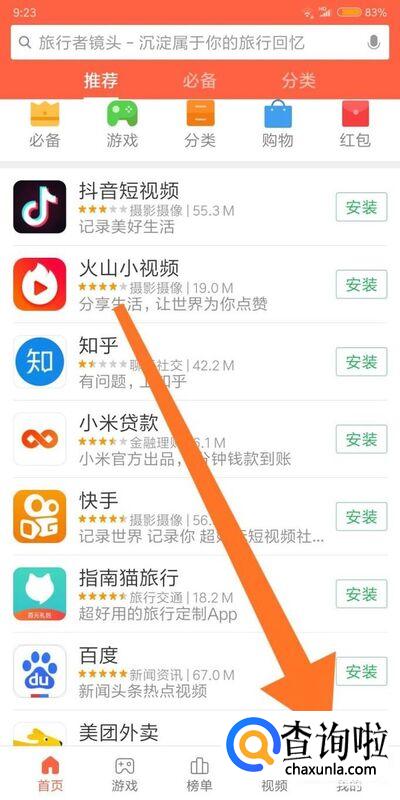 然后点击应用商店底部导航栏菜单的“我的”选项。
