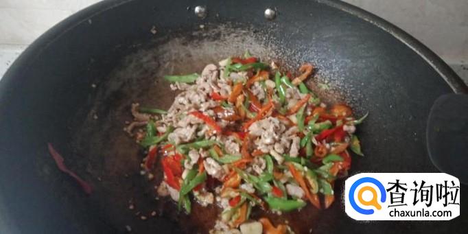 起锅下油,等到油热了以后,就能把肉丝放进去翻炒,自己感觉差不多了以后,就能把炒好的肉丝装在盘子中放在一旁。