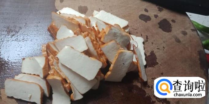 切好肉丝之后,下面就是来准备切香干,香干在切的时候最好是薄点,如果太厚的话,等下炒的时候入味的口感并没有那么完美。