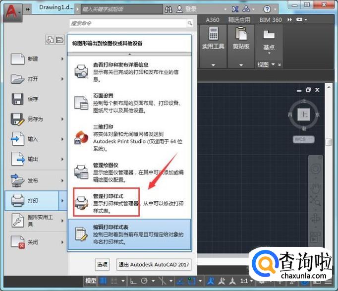 点击打印选项在其子级菜单里找到管理打印样式选项,如图所示: