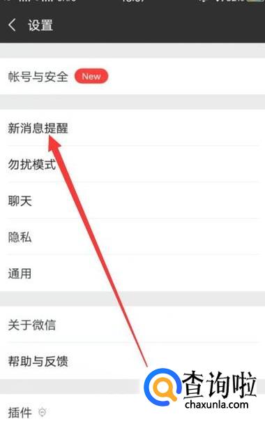 进入之后,点击“新消息提醒”,点击并进入,如图所示。