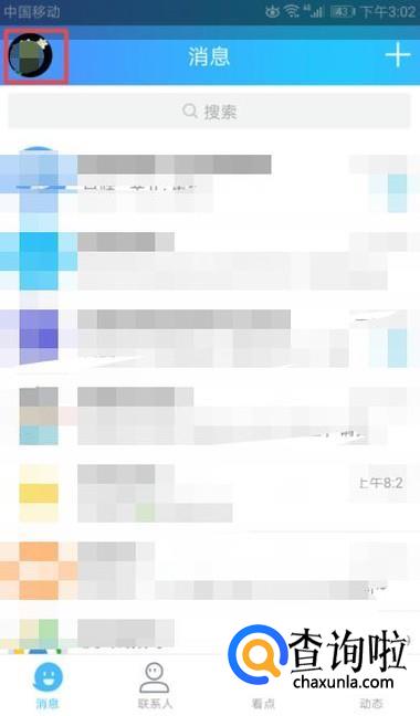 首先,我们打开我们手机上面的QQ,然后我们点击左上角的头像;