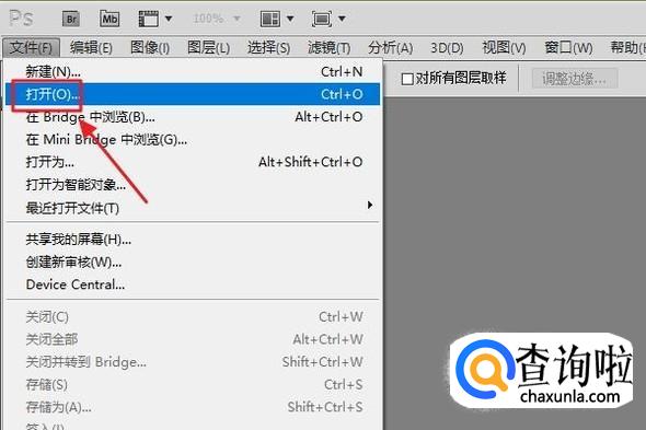 打开PS软件以后,依次点击“文件”-“打开”,然后将我们的照片素材添加进来,如下图二;