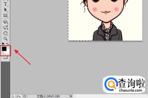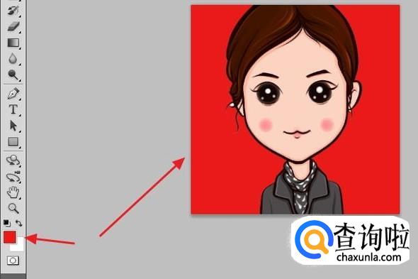 然后在软件的左下角点击前景色和背景色,一般来说这里默认的是黑白两种颜色,点击黑色以后我们手动将其调整为红色或者蓝色,接下来按住Alt+delete,将刚才设置好的红色填充到照片的背景色即可,我们就发现此时照片变成了红色的证件照背景;