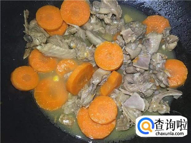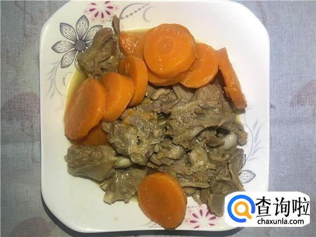 鸭肉、红萝卜、老姜、花生油、老抽、盐、料酒、清水