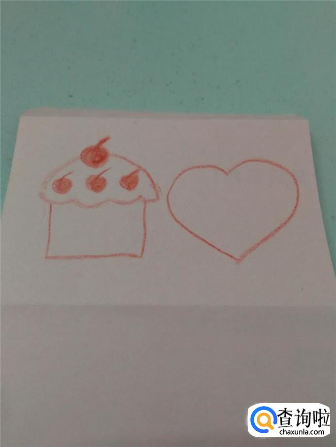 用红笔在蛋糕的右边再画一个大桃心。