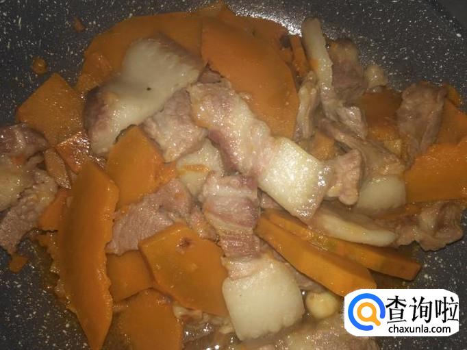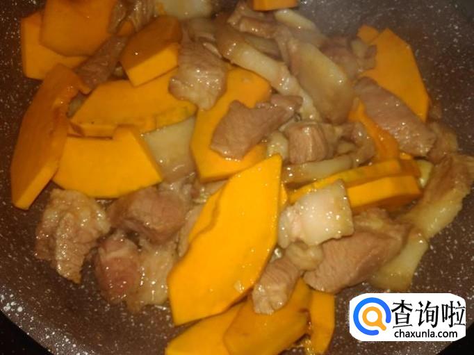 打开锅盖翻炒一下,熄火。非常好吃的南瓜焖猪肉就做好了。