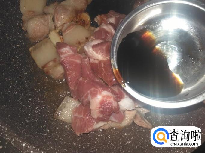 再放瘦肉进去,加1勺生抽,1勺料酒。