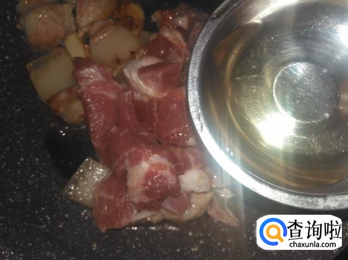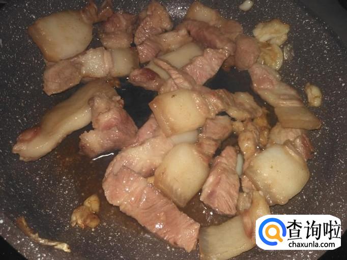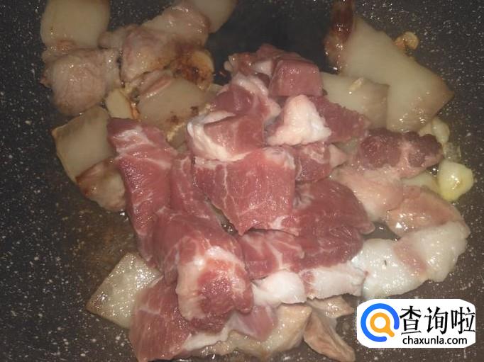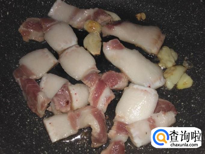 然后把肥点的肉片先进去煎出油。
