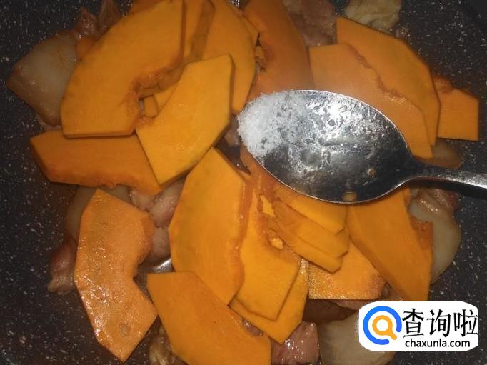 然后下南瓜进去,加适量的盐。