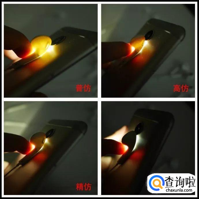 因为原装 EarPods 使用了复杂的结构来保证良好的低频,所以内部结构不是一层,且非常厚。所以如下图所示,在闪光灯照射下耳机本体基本上不透光。而精仿,高仿,普仿 EarPods 透光依次加强。因为越是受到成本限制,他们能使用的外壳厚度就越薄。
