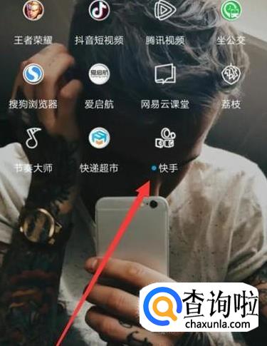 打开手机,找到快手,点击并进入,如图所示。