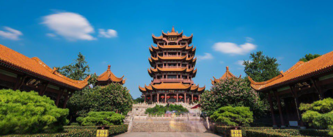 黄鹤楼在我国湖北省武汉市,位于武汉市长江边的蛇山上。黄鹤楼在三国时期是军事楼,后演变成为观赏楼,历代文人墨客在此留下了许多千古绝唱如《黄鹤楼》《黄鹤楼送孟浩然之广陵》等,使得黄鹤楼自古以来闻名遐迩。
