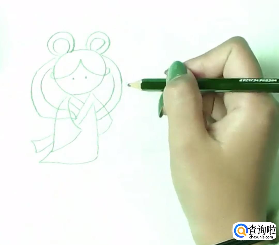 接下来在嫦娥的头部下面画出嫦娥的身体,注意画出嫦娥仙子飘逸的仙女裙。