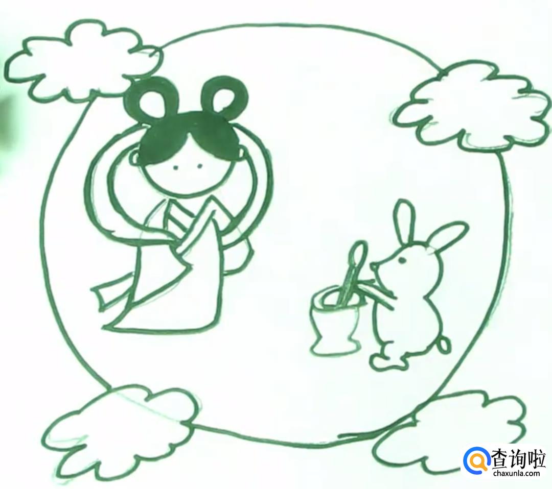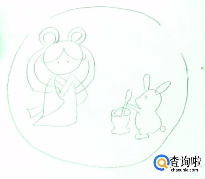 然后我们画出常伴嫦娥身边的玉兔以及玉兔经常使用的罐子。