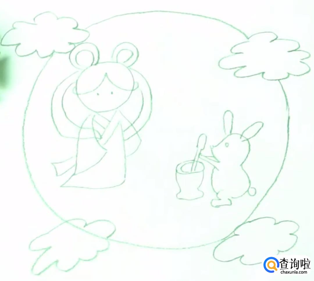 接下来在嫦娥和玉兔的背后画出一个大的月亮。