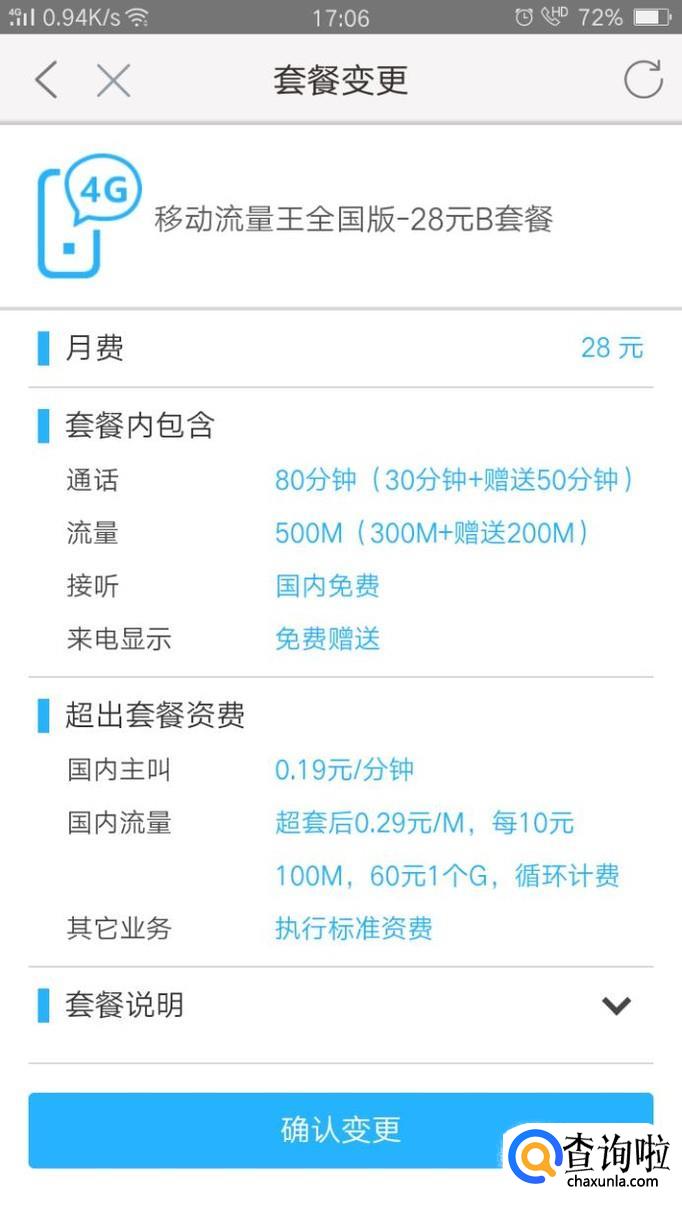 注意套餐一个月只能变更一次哦!