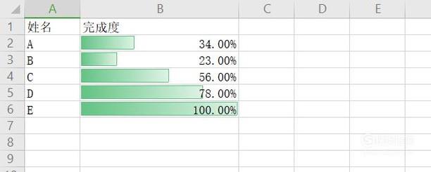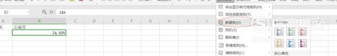 在B2单元格中输入34,回车,选择 条件格式中的数据条选项,选择一种自己喜欢的填充方式