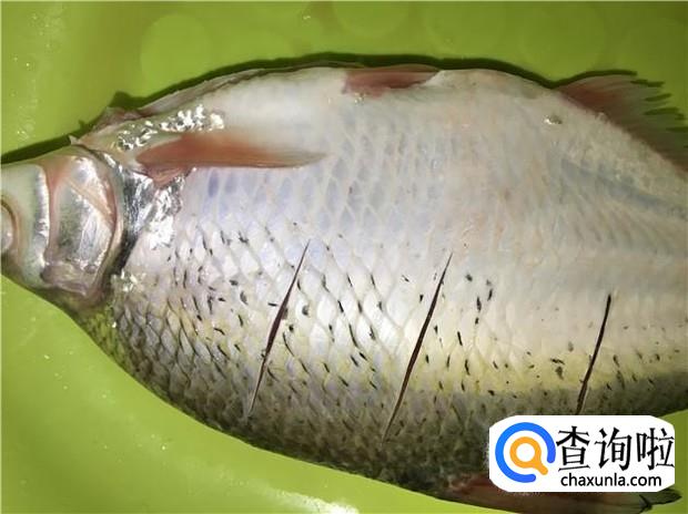 在鱼身上轻轻切几刀,这样是为了好入味。