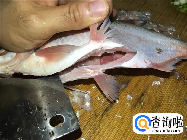 用刀挂掉鱼鳞、去掉鱼内脏、去掉鱼鳃,再用清水把鱼给清洗干净。